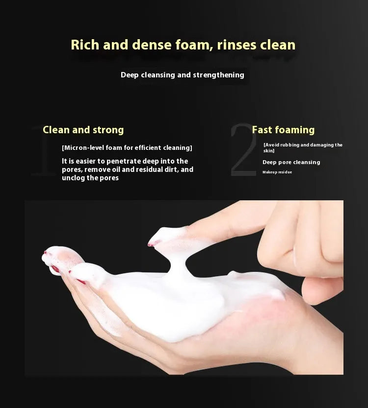 The soft transparent foam creates a rich, lightweight lather that deeply cleanses without stripping the skin, leaving it feeling hydrated, smooth, and refreshed. With its water–oil balancing properties, it works perfectly for oily, combination, and acne-prone skin, reducing excess sebum while keeping your complexion nourished.