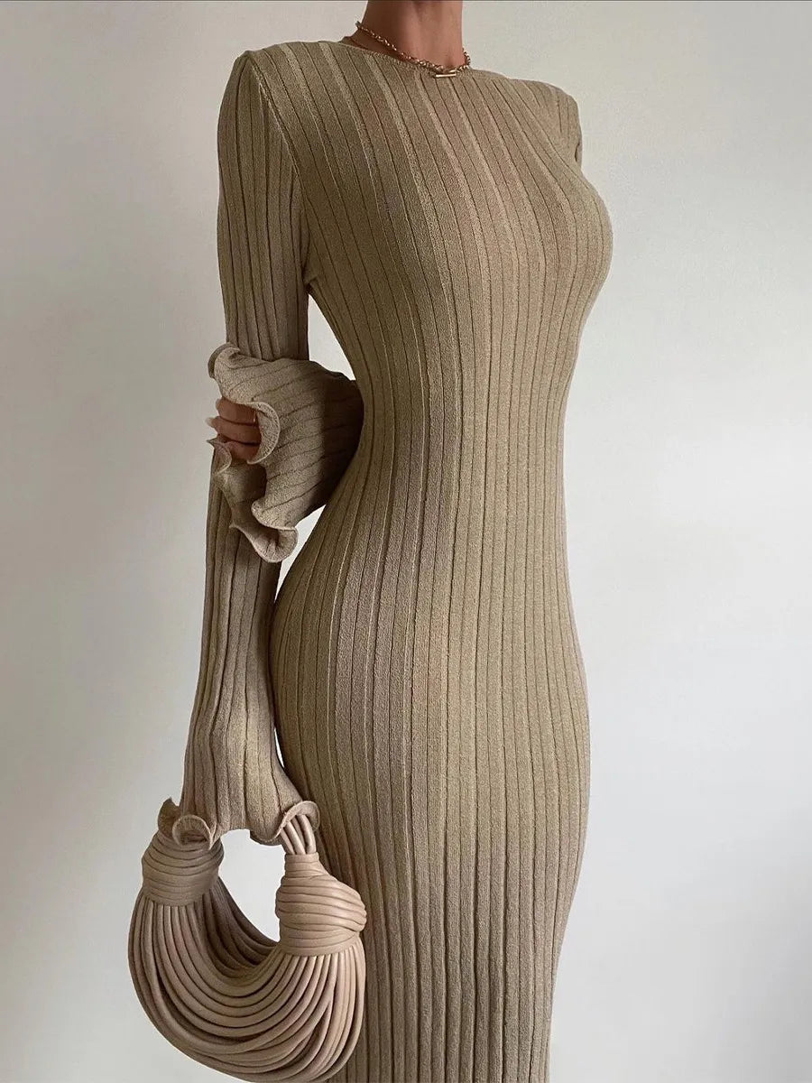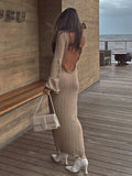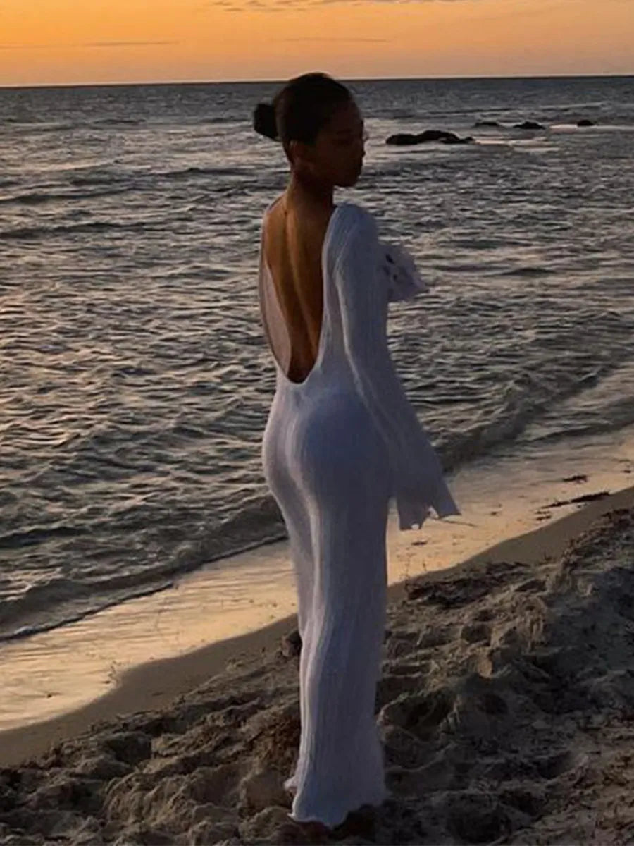 Fashion Slim Long-Sleeved Ruffled Maxi Dress – Backless Knitted Party & Beachwear