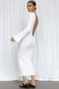 Step out with grace, allure, and confidence in our Fashion Slim Long-Sleeved Ruffled Backless Knitted Maxi Dress—the ultimate outfit for parties, beach holidays, and special occasions.
