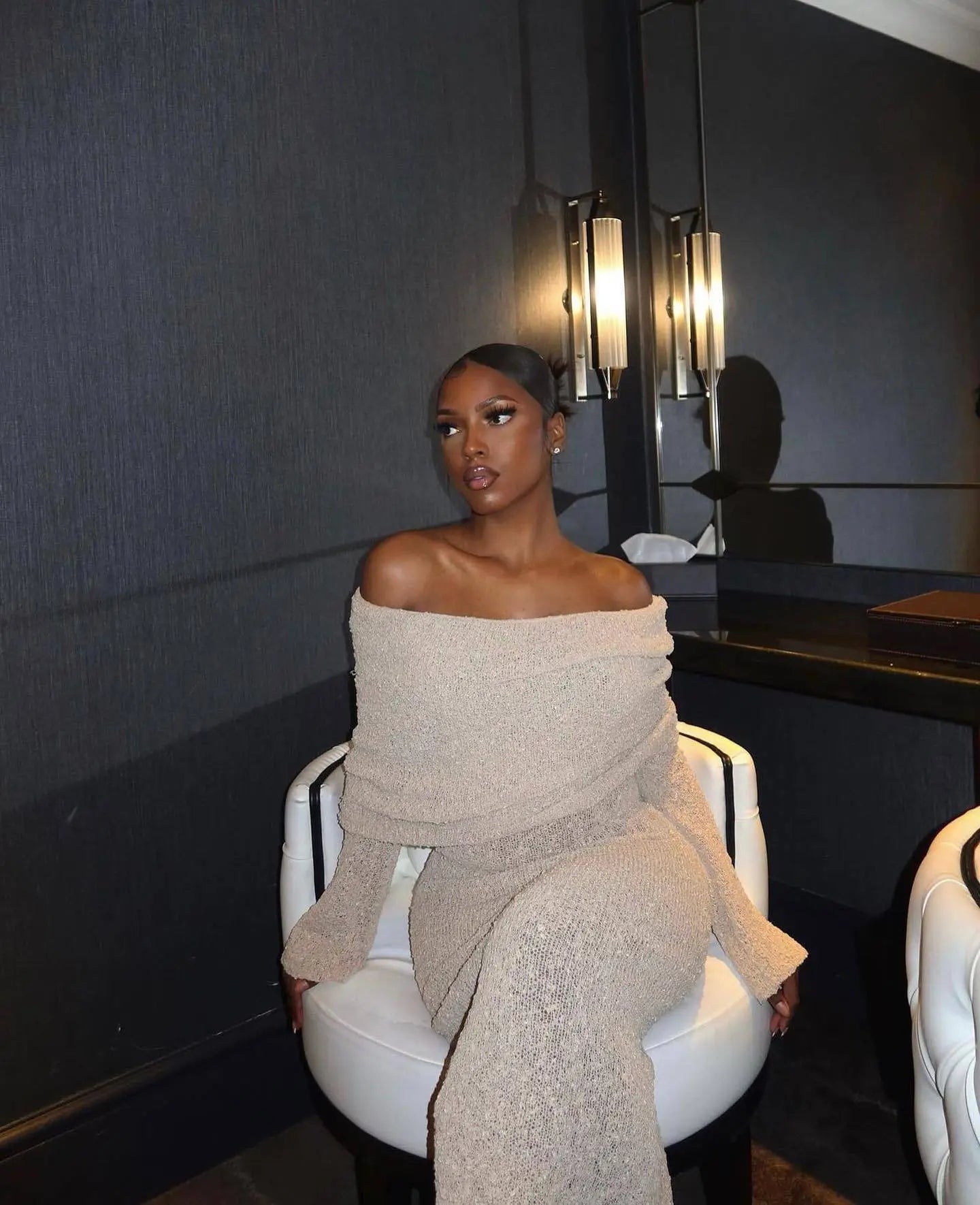 Crafted from high-quality, breathable knitted fabric, this dress ensures maximum comfort while maintaining its flattering silhouette. The one-shoulder design adds a bold, modern touch, highlighting your neckline and shoulders for a sexy yet classy look. With its long sleeves, it balances allure with sophistication, making it versatile for both day and night wear.